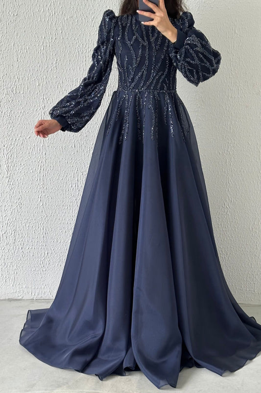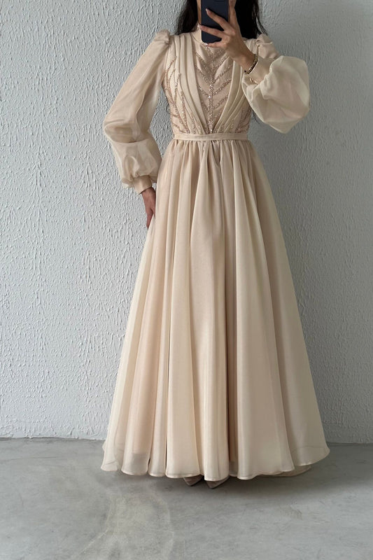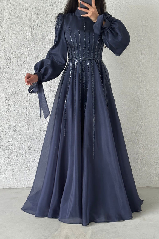 Comfortable Tie-Up Sleeve Detailed Organza Evening Dress 0006