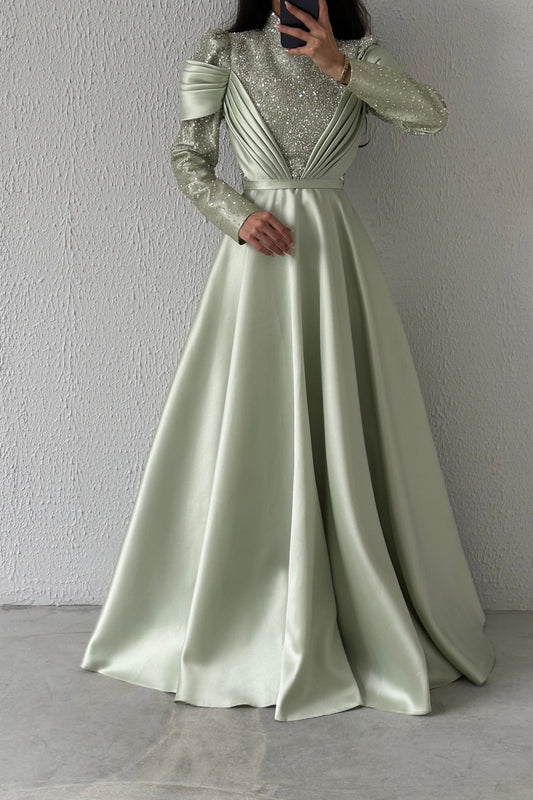 Pearl Sparkling Draped Satin Evening Dress 0005