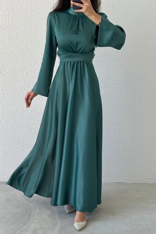 Basic Satin Evening Dress with Back Tie Detail 6999